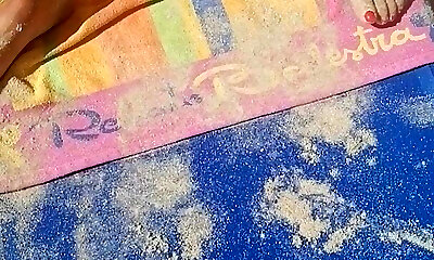 Exibitionist female getting naked on the beach