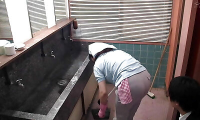 When a bossy husband comes home he sees his wife smooching a beautiful platinum-blonde lady who used to be their maid, he put out his sausage from pants to join them