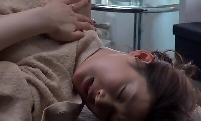 Japanese nubile gives her boyfriend a rubdown and ends up giving him her cunt to fuck until she comes on his cock