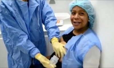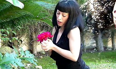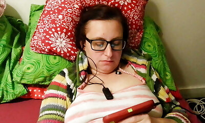 Fishnet bodystocking with her massive erect sausage getting stroked by her soft and lovely hands as they pinch her nipples