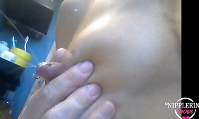 nippleringlover horny pregnant milf milky tits pierced nipples splattering lots of milk on mirror