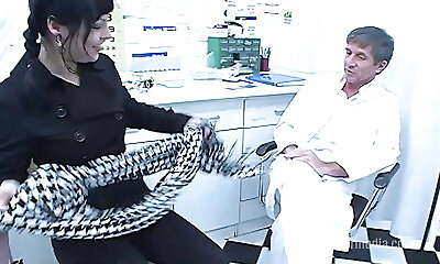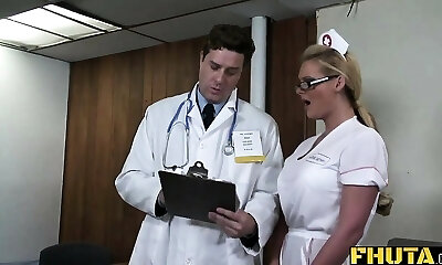 Beautiful dark haired whore with a perfect pair of tits gets her holes filled with man meat by 2 male nurses