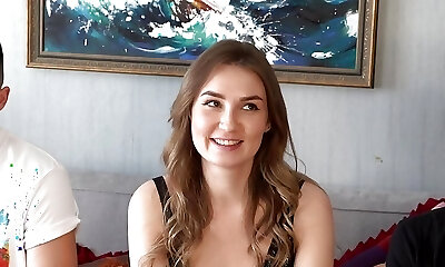 Super-naughty stepsister rubs her pussy on stepbrothers rigid dick, do sucky-sucky and then fucks him deep till huge creampie!