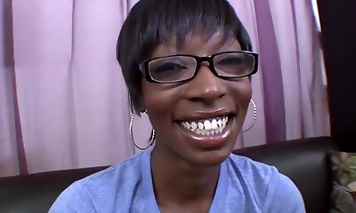 Ugly black chick in glasses gives a legendary deep-throat blowjob
