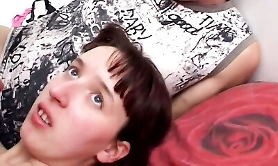 Nerdy student enjoyed rough sex and hot cum on her small bra-stuffers.