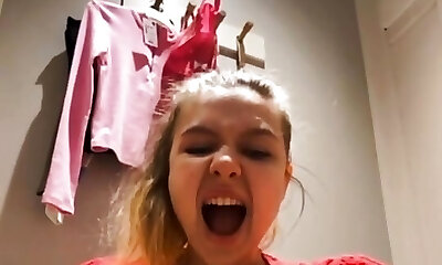 Towheaded teen with huge breast masturbating on webcam